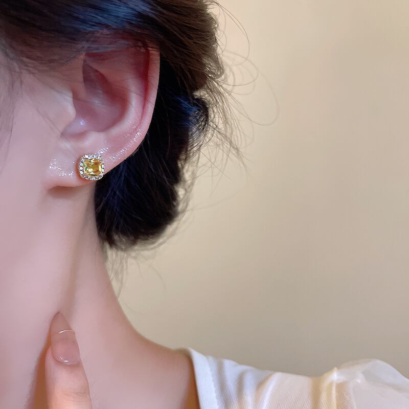 洗練されたデザインのイエロージルコン女性用軽量高級ニッチデザインシュガーキューブピアス S925シルバー針使用!