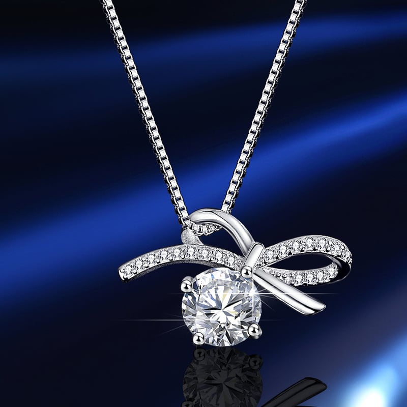 美しいS925シルバー製の蝶結び1ctモアサナイトペンダントネックレスが新登場です!トレンドの韓国ファッションを取り入れたデザインは、どんなコーディネートにも華やかさを加えます。 | Mido Nobu Accessory Shop