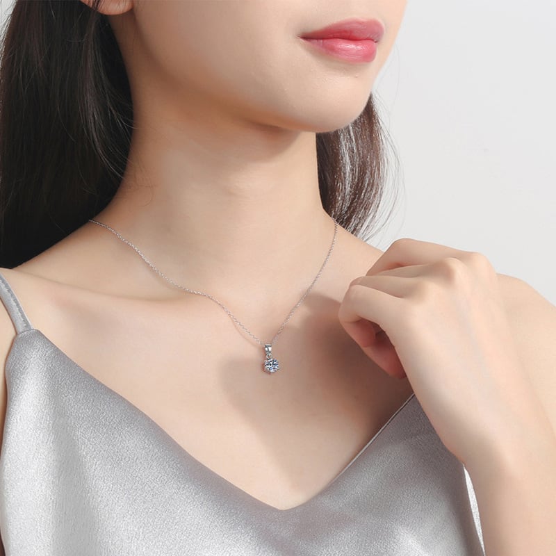 このネックレスは、1ctのモアサナイトを使用し、エレガントな六爪デザインが特徴です。特別なイベントや大切な方への贈り物にも最適なアイテムで、幅広いシーンでご活躍いただけます。S925シルバー製のため、軽やかな着用感を実現し、長時間でも快適にお使いいただけます。この豪華な仕上げが、あなたの魅力を一層引き立てます!