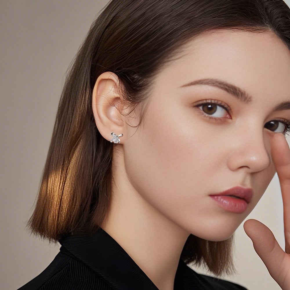 エレガントなスタイルを演出する0.2ctのモアサナイト軽い高級感のイヤリングピアス、S925スターリングシルバーリボンが新登場です!その華やかでありながら繊細なデザインが、あなたの耳元を引き立て、注目を集めることでしょう。 | Mido Nobu Accessory Shop