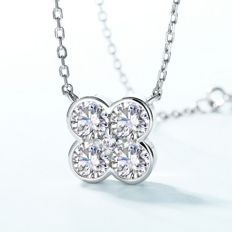 洗練された美しさを纏う、クロスボーダーの新しい四枚の花びらモアッサナイトネックレス S925シルバーチェーンが新登場です!その華やかなデザインが、あなたの胸元を引き立て、特別なシーンを彩ります。