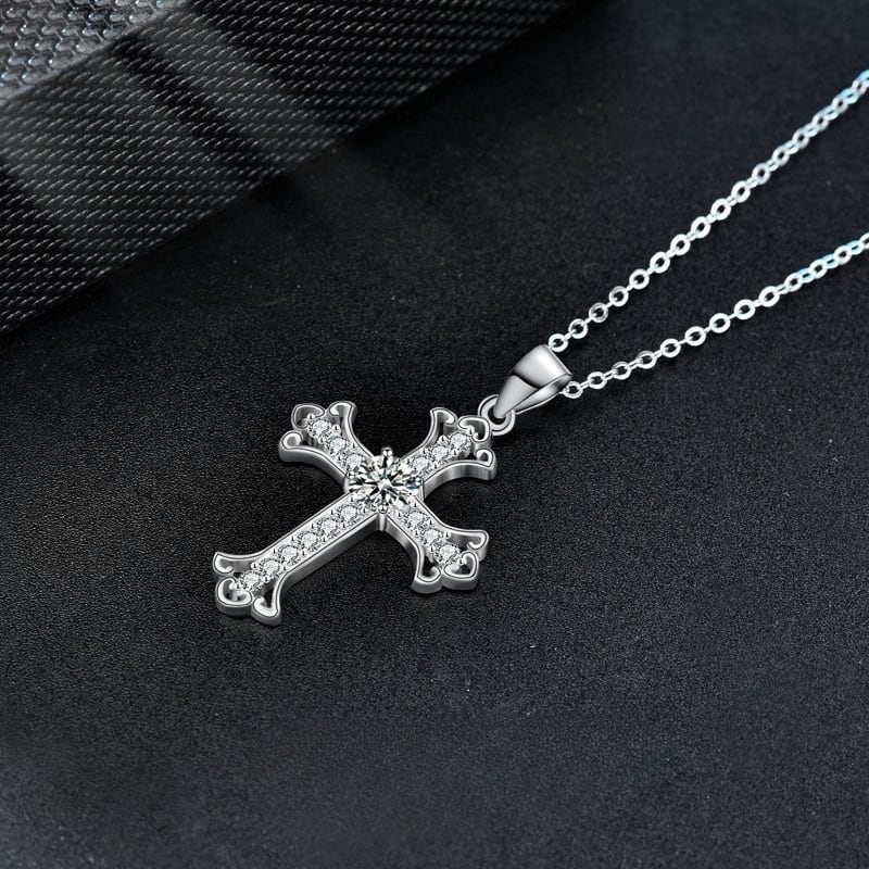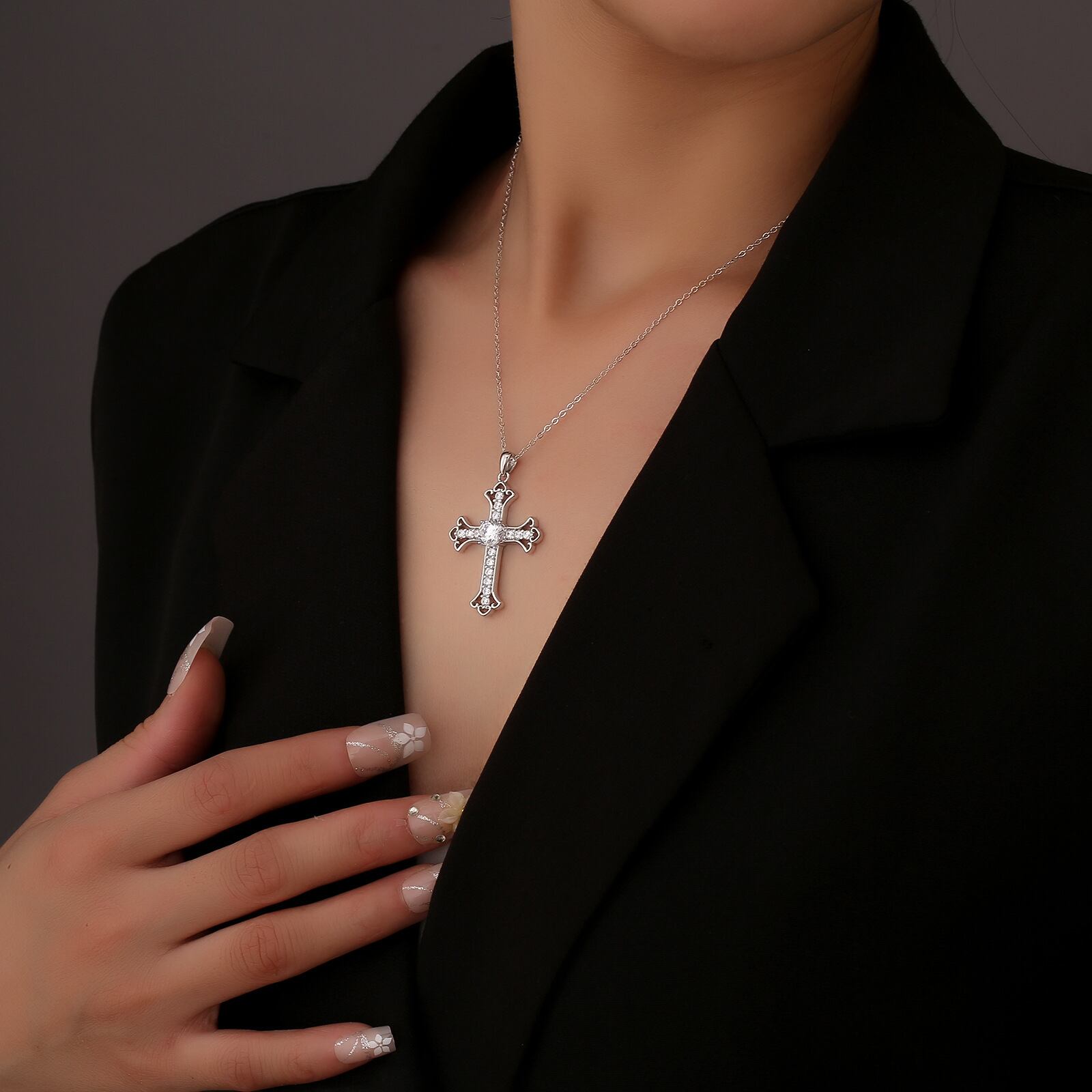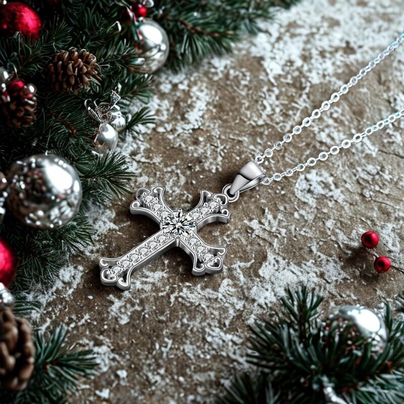 キラキラ輝く、モアサナイト0.5ctが美しい上品なシルバー製十字架のペンダントが登場です!その華やかなデザインが、あなたの胸元を素敵に飾り、特別なシーンを彩ります。