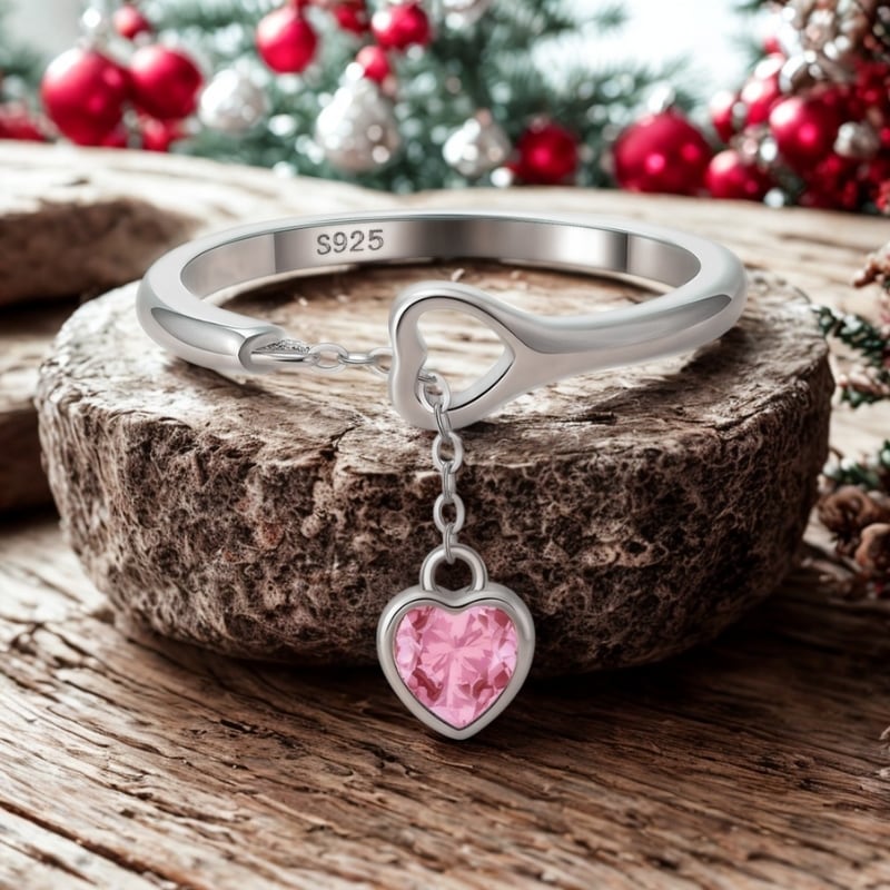 可愛いジルコンのピンクハートをあしらった、魅力的なS925シルバー製の指輪が登場です!その愛らしいデザインが、あなたの指先を華やかに飾り、特別なシーンを彩ります。